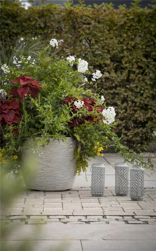 Tipp: Zur Dekoration, z.B. zur Weihnachtszeit können Ihre Kübel zusätzlich in farbige Rindenholzmatten oder Weidematten eingewickelt werden. Auch hübsche Bänder, Kordeln und Lichterketten zaubern eine festliche Stimmung.