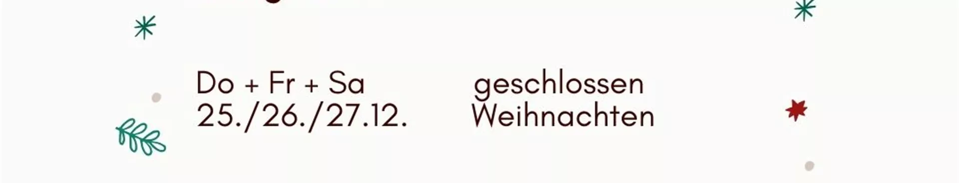 Heiligabend sowie Silvester haben wir bis 12.30 Uhr geöffnet.